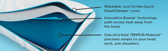 | Cool-to-the-touch comfort | The removable, machine-washable SmartClimate® Cover is woven with special fibers that draw heat away from the body for all-night cooling comfort. | |