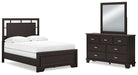 | Details | B441B4: Includes panel headboard, footboard, rails and slats, Made with hardwood solids, engineered wood veneer and MDF substrates, Dark brown finish, Floating panel headboard, Picture frame footboard, Foundation/box spring required, sold separately , Mattress available, sold separately, Assembly required, B441B1: Includes dresser and mirror, Made with hardwood solids, engineered wood veneer and MDF substrates, Dark brown finish, Metal bar pulls with bright nickel-tone finish, 7 smooth-gliding drawers with dovetail construction and metal center guides, Drawer interiors are lined with a wood grain laminate for a clean, finished look, Top moulding on dresser, Mirror attaches to back of dresser, | |