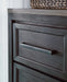 | Details | B989B4: Includes king panel headboard, storage footboard and rails with roll slats, Made with hardwood solids, select oak veneers and engineered wood, Two-tone finish (brushed black and dusty grayish brown wood tone), Headboard with picture frame moulding, Footboard with two deep drawers, Smooth-gliding soft-close drawers with fully finished interiors and dovetail construction, Sleek drawer pulls with black finish, Bed does not require additional foundation/box spring; accommodates most zero clearance adjustable bases with the addition of a bunkie board, Mattress available, sold separately, Assembly required, B989B1: Includes dresser and mirror, Made with hardwood solids, select oak veneers and engineered wood, Two-tone finish (brushed black and dusty grayish brown wood tone), Sleek drawer pulls with black finish, 11 soft-close, smooth-gliding drawers with fully finished interiors and dovetail construction (top drawers felt lined), 5 drawers with brushed black finish; 6 drawers with grayish brown wood tone, 3 drawers located behind each door, Mirror mounts to back of dresser, Assembly required, | |