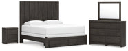 Fraluna King Panel Storage Bed with Mirrored Dresser and Nightstand