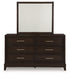 | Details | B618B4: Includes upholstered panel headboard, panel rails and panel footboard with slats, Made with hardwood solids, engineered wood and MDF substrates, Grayish brown wood-tone finish, Floating inset upholstered panel in polyester Next-Gen Nuvella fabric surrounded by LED backlight, Next-Gen Nuvella™ is a performance fabric that is soft, easy to clean, stain-resistant and durable, Clean fabric with mild soap and water, let air dry; for stubborn stains, use a solution of 4 oz. bleach to 28 oz. water, Light switch is located on each side of headboard and includes dual USB charging port (USB-A and USB-C), Power cord included; UL Listed, Foundation/box spring required, sold separately, Mattress available, sold separately, Assembly required, B618B1: Includes dresser and mirror, Made with hardwood solids, engineered wood and MDF substrates, Grayish brown wood-tone finish, Metal bar pulls with satin nickel-tone finish, 6 smooth-gliding drawers with dovetail construction and heavy duty ball-bearing side glides (top drawers felt lined), Mirror attaches to back of dresser, B618-92: Made with hardwood solids, engineered wood and MDF substrates, Grayish brown wood-tone finish, Metal bar pulls with satin nickel-tone finish, 2 smooth-gliding drawers with dovetail construction and heavy duty ball-bearing side glides (top drawers felt lined), | |