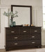 Feast your eyes on this richly versatile bedroom package. Its traditional-inspired dark brown finish effortlessly blends with contemporary details to create a stunning look that's not too stuffy or too trendy. Such a refined way to wake up your bedroom style.