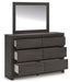 | Details | PCB3370B4: Includes headboard panel, headboard posts, storage footboard and rails, Made with engineered wood (MDF/particleboard/plywood) and decorative laminate for the right balance of affordability and durability , Dark charcoal finish over replicated oak grain, Decorative laminate replicates natural or man-made material surfaces with consistent color, pattern and texture, 2 smooth-gliding drawers in footboard, Foundation/box spring required, sold separately, Mattress available, sold separately, Assembly required, PCB3370B1: Includes dresser and mirror, Made with engineered wood (MDF/particleboard/plywood) and decorative laminate for the right balance of affordability and durability , Dark charcoal finish over replicated oak grain, Decorative laminate replicates natural or man-made material surfaces with consistent color, pattern and texture, Recessed hand grabs create hardware-less effect, 6 smooth-gliding drawers, Drawer interiors are lined with a faux linen laminate for a clean, finished look , Safety is a top priority, clothing storage units are designed to meet the most current standard for stability, ASTM F 2057 (ASTM International), Drawers extend out to accommodate maximum access to drawer interior while maintaining safety, Mirror attaches to back of dresser; can also be mounted on wall horizontally or vertically, Assembly required, | |