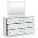 | Details | B139B41: Includes panel headboard/footboard and rails, Made with engineered wood (MDF/particleboard/plywood) and decorative laminate for the right balance of affordability and durability, Replicated solid white paint, Decorative laminate replicates natural or man-made material surfaces with consistent color, pattern and texture, Foundation/box spring required, sold separately, Mattress available, sold separately, Assembly required, B139B40: Includes dresser and mirror, Made of engineered wood (MDF/particleboard), Knobs with pewter-tone finish, Scalloped moulding, 6 smooth-operating drawers, Includes tipover restraint device, Mirror attaches to back of dresser; can also be mounted on wall horizontally or vertically, Safety is a top priority, clothing storage units are designed to meet the most current standard for stability, ASTM F 2057 (ASTM International), Drawers extend out to accommodate maximum access to drawer interior while maintaining safety, B139-46: Made of engineered wood (MDF/particleboard), Pewter-tone knobs, Scalloped moulding, 5 smooth-operating drawers, Small Space Solution, Includes tipover restraint device, Safety is a top priority, clothing storage units are designed to meet the most current standard for stability, ASTM F 2057 (ASTM International), Drawers extend out to accommodate maximum access to drawer interior while maintaining safety, B139-91: Made of engineered wood (MDF/particleboard), Pewter-tone knobs, 1 smooth-operating drawer, 1 storage cubby, Scalloped moulding, Small Space Solution, | |