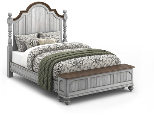 FlexsteelWarm and Weathered Drift off to sleep in the cozy, cottage-style Plymouth Poster Storage Bed, featuring charming, paneled accents and detailed mol...
