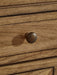 Details Includes dresser and mirror, Made with hardwood solids, hickory wood veneer and MDF substrates, Light brown wood-tone finish, Dark bronze-tone drawer pulls, 9 drawers with fully finished interior, dovetail construction and heavy duty ball-bearing side glides (top drawers felt lined), Mirror attaches to back of dresser
