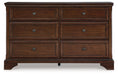 Details Made with hardwood solids, select hardware veneer and MDF substrate, Warm brown cherry finish, Decorative metal drawer pulls with dark bronze-tone finish, 6 drawers with fully finished interior, dovetail construction and heavy duty ball-bearing side glides