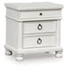 Taking a laid-back approach to casual traditional design, this artfully crafted nightstand combines classic elements with a clean modern approach. Its rubbed antiqued white finish exudes a comfy, timeless appeal that's sure to carry you away to a dreamy time and place. The simple round metal knob and ring pulls on the nightstand's spacious drawers make just the right statement, while an integrated power outlet and USB charging keep your devices powered up overnight.