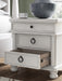 Details Made with hardwood solids, veneers and MDF substrates, Rubbed antiqued white finish, Metal hardware with pewter-tone finish, 3 smooth-gliding drawers with fully finished interiors, French/English dovetail construction and heavy-duty ball-bearing side glides, Top drawer felt lined, 110V power supply with USB-A and USB-C charging ports, Power cord included; UL listed