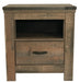 Details Made of engineered wood (MDF/particleboard) and decorative laminate, Warm rustic plank finish over replicated oak grain with authentic touch, Antiqued bronze-tone hardware, 1 storage cubby, 1 smooth-operating drawer, Nailhead accents, 2 slim-profile USB charging stations, Power cord included; UL Listed, Assembly required