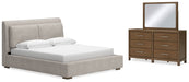 Cabalynn California King Upholstered Bed with Mirrored Dresser