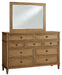 Details B895B7: Includes upholstered panel headboard, footboard, rails and slats, Made with hardwood solids, hickory veneer and MDF substrates, Light brown wood-tone finish, Polyester upholstery, Foundation/box spring required, sold separately, Mattress available, sold separately, Assembly required, B895B1: Includes dresser and mirror, Made with hardwood solids, hickory wood veneer and MDF substrates, Light brown wood-tone finish, Dark bronze-tone drawer pulls, 9 drawers with fully finished interior, dovetail construction and heavy duty ball-bearing side glides (top drawers felt lined), Mirror attaches to back of dresser, B895-93: Made with hardwood solids, hickory wood veneer and MDF substrates, Light brown wood-tone finish, Dark bronze-tone drawer pulls, 3 drawers with fully finished interior, dovetail construction and heavy duty ball-bearing side glides (top drawer felt lined), 110V power supply with USB-A and USB-C charging ports, Power cord included; UL Listed,