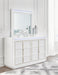 | Details | Includes dresser and mirror, Made with solid wood components, MDF substrate and decorative laminate, White lacquer finish, Vertical metal drawer pulls, Built-in LED lighting with 3-way dimmer switch, 6 drawers with fully finished interior, dovetail construction and heavy duty ball-bearing side glides, Drawers with rhinestone frames; textured laminate drawer fronts, Mirror attaches to back of dresser, Power cord included; UL Listed | |