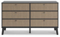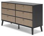 Put a retro spin on current trends with this dresser. Its mixed-material look of matte black and replicated beige cane brings a casually cool feel to your bedroom. Simple, sleek hardware and splay legs round out the urban meets mid-century vibe.