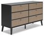 Details Made with engineered wood (MDF/particleboard/plywood) and decorative laminate for the right balance of affordability and durability, Matte black finish with subtle replicated wood grain, Drawer fronts with replicated beige cane finish, Matte black knobs, 6 smooth-gliding drawers with vinyl-wrapped sides and back, Splay legs, Safety is a top priority, clothing storage units are designed to meet the most current standard for stability, ASTM F 2057 (ASTM International), Drawers extend out to accommodate maximum access to drawer interior while maintaining safety, Assembly required