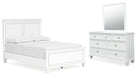 | Details | B680B8: Includes full panel headboard, footboard and rails, Made with hardwood solids and MDF substrate, White painted finish, Tapered feet, Foundation/box spring required, sold separately, Mattress available, sold separately, Assembly required, Bed is compatible with an adjustable base, B680B1: Includes dresser and mirror, Made with hardwood solids and MDF substrate, White painted finish, 7 smooth-gliding drawers with dovetail construction and ball-bearing side glides, Round metal drawer knobs with satin nickel-tone finish, Tapered feet, Mirror attaches to back of dresser, Assembly required, | |