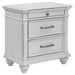 Give your retreat vintage charm and valuable bedside storage with this nightstand. In a beautifully distressed whitewash finish, two drawers and a smaller top accessory drawer will help you keep bedtime essentials nearby in casual style. Generously scaled moulding from top to bottom, along with bun feet and drawer handles with a transitional aesthetic, give this nightstand character—evoking the feel of a quaint cottage escape.
