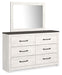 | Details | B1190B9: Includes king panel headboard, footboard and rails, Made with engineered wood (MDF/particleboard) and decorative laminate, White rustic finish with replicated cedar grain and authentic touch, 2 decorative sconce lights, Lights in matte black finish with champagne-colored accents, Headboard with abstract design, Power cord included; UL Listed, Foundation/box spring required, sold separately, Mattress not included, sold separately, Assembly required, Bed is compatible with an adjustable base, B1190B1: Includes dresser with mirror, Made of engineered wood (MDF/particleboard) and decorative laminate, White rustic finish with replicated cedar grain, Rustic gray planked replicated oak grain with authentic touch, 6 smooth-gliding drawers with faux linen lining, Large scale dark colored handles, Mirror attaches to back of dresser, Assembly required, B1190-44: Made of engineered wood (MDF/particleboard), and decorative laminate, White rustic finish with replicated cedar grain, Rustic gray planked replicated oak grain with authentic touch, 4 smooth-gliding drawers with faux linen lining, Large scale dark colored handles, Safety is a top priority, clothing storage units are designed to meet the most current standard for stability, ASTM F 2057 (ASTM International), Drawers extend out to accommodate maximum access to drawer interior while maintaining safety, Assembly required, B1190-92: Made of engineered wood (MDF/particleboard), White rustic finish with replicated cedar grain, Rustic gray planked replicated oak grain with authentic touch, 2 smooth-gliding drawers with faux linen lining, Large scale dark colored handles, Assembly required, | |