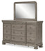 Details B924B4: Includes panel headboard and sleigh footboard with rails, Made with hardwood solids, birch veneer and MDF substrate, Light gray finish enhances the natural wood grain, Foundation/box spring required, sold separately, Mattress available, sold separately, Assembly required, B924B1: Includes dresser and mirror, Made with hardwood solids, birch veneer and MDF substrate, Light gray finish enhances the natural wood grain, Ring pull hardware, 9 drawers with fully finished interiors, dovetail construction and ball-bearing side glides, Jewelry drawer conveniently located in the center valance, Mirror attaches to back of dresser,