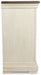 Details D647D17: Made with wood, veneer and engineered wood, Tabletop with textural weathered oak finish , Base with textured antiqued white finish , Removable center leaf, Table extends to 103" by pulling both ends and dropping in leaf, Seats up to 10 with removable leaf in place, Dining chairs sold separately, Assembly required, D647-01: Made of solid wood, Antiqued white finish, Cushioned seat upholstered in heavy woven polyester fabric, Assembly required, D647-02: Made of wood and engineered wood, Antiqued white finish, Cushioned seat with heavy woven polyester upholstery on front/back, Assembly required,