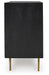 Style? Tons. Storage? Check. This accent cabinet adds more than just a contemporary cool design to your space. Finished in black and goldtone with a carved pattern on the door fronts, it conveys a sophisticated style that's perfect for a bar area. Push magnet doors open to reveal a shelf. After a long day of adulting, let this piece help you mix up a little reward.