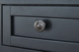 | Details | Made with hardwood solids, mango wood veneer and MDF substrates, Top with butcher block veneer pattern in rich brown wood tone finish, Base with warm satin black finish, Hardware with dark pewter-tone finish, Smooth-gliding drawer with fully finished interior, dovetail construction and heavy-duty ball-bearing side glides, Open shelf, USB-A and USB-C charging ports, Power cord included; UL Listed, Assembly required | |