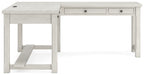 | Details | Includes desk and desk return, Made with hardwood solids, ash veneer and MDF substrates, Antiqued white finish with wood grain texture, Round metal knobs with aged pewter-tone finish, 3 smooth-gliding drawers , Wide keyboard drawer with drop-down front, Cutout for cord management, 110V power supply with USB-A and USB-C charging ports , Power cord included; UL Listed, Assembly required | |