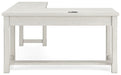 This L-shaped home office desk is sure to impress when it’s time to study or work from home. With its antiqued white finish and wood grain texture, modern farmhouse-style workstations have never been so fashionable. A wide keyboard drawer and convenient USB charging bring function galore to your at-home office. The desk return expands your workspace and adds spacious drawers to keep all your stuff organized. All that’s missing is you.