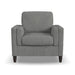 Retro Revival Experience timeless appeal with a modern twist with the Thomas chair. Inspired by classic mid- century style and vintage Flexsteel designs, this refined chair features layered arms, round tapered legs and a bullnose cushion. Create the perfect style for your home with your choice of upholstery fabric. Sized for ultimate versatility, the Thomas chair brings casual sophistication and unmatched comfort to any living space. Attached layered arms remain in place over time Round tapered legs in your choice of three finishes The patented Blue Steel Spring in the seat provides unmatched support and lasting comfort Sustainably sourced wood frame delivers exceptional durability The removable and reversible back and seat cushions allow you to flip and rotate them for even wear The seat cushion has a high-resiliency foam core that is engineered to maintain its shape over time and contains a layer of recovery foam and a soft fiber top for luxurious comfort Upholstered in your choice of fabric, including those with performance and sustainability characteristics Handcrafted in North America Model Number: 5350-10 Dimensions 36H x 38W x 36L
