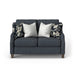 Vintage-Inspired Elegance A true heirloom loveseat, Gianna is vintage-inspired elegance to last a lifetime. This loveseat sports luxurious English arms with a welt trim for added glamour. Vintage style meets modern innovation with removable, high-density cushions, easy to clean and built to last with our patented Blue Steel Spring ™ seat system. Available in high-performance upholstery options to stand up to daily wear, the Gianna is a timeless piece built to last a lifetime. With square tapered legs available in three gorgeous finish options, this loveseat is perfect for those looking to make a statement. Elegant English arms with a welt-trim Square-tapered legs, available in three finish options Includes four accent pillows in your choice of fabric to match your personal style Built to last with Flexsteel’s Blue Steel Spring™ seat system providing unmatched support and durability Removable, high-density foam core box seat cushions, engineered to maintain their shape over time, complete with a layer of recovery foam for everlasting quality and luxurious comfort Loose, welt-trimmed box back cushions can be rotated and sit on a pillow ledge to prevent them from falling behind the seat cushions Sustainably sourced, kiln-dried wood frame with mortise and tenon joinery for lasting strength Upholstered in the expertly tailored fabric of your choice, including high-performance and sustainable options Handcrafted in North America Model Number: 7823-20 Dimensions 40H x 60W x 40L