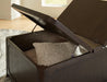 | Details | Made with hardwood solids, oak veneer and MDF substrate, Dark brown wood-tone finish with rich dark grain contrast, 2-sided hinged top opens to reveal storage, Assembly required | |