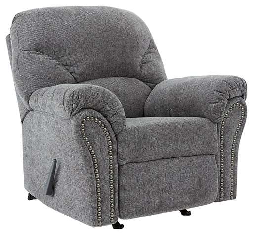 Signature Design by Ashley®A mastery in "less is more," this rocker recliner manages to make cool, contemporary design so warm and cozy. Its smoky gray upholstery, incredibly...