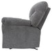 Why sacrifice comfort for style (or style for comfort) when you can have the best of both in this rocker recliner in pewter gray. Elements include a chic divided-back design and pillow top wrapped armrests that make nodding off all too easy. Calling attention to the elegantly flared armrests—black nickel nailhead trim for a punch of cool character.