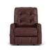The most handsome seat in the house Devon’s profile includes puckered stitching and a tufted back, which provides contrast and style while delivering extreme comfort and relaxation. Feel content while you lean back and rest your feet on the fully padded footrest. Nailhead trim outlines the front of the arms adding flair to its traditional design. Rock back and forth while relaxing, or effortlessly recline at multiple angles from an upright to a fully reclined position. To lower the footrest, apply pressure to it in a downward motion. Lowering the footrest with the handle can damage the recliner. Safety locks prevent the recliner from rocking while reclining. Removable back allows for easy lifting and maneuvering through doorways. Model Number: 3882-51 Dimensions 41H x 34W x 40L