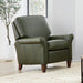 Deep seating with refined style Lean back and look sophisticated in this Westside classic. Rolled arms and tapered wooden legs elevate an angled profile so you can sit back and relax elegantly. Soft boxed seat and back cushions paired with quality construction provide years of comfortable seating for you and your family. A smooth reclining mechanism lets you change angles effortlessly from an upright to a fully reclined position. Model Number: 3979-503 Dimensions 40H x 34W x 38L