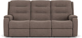 Supportive Style Make it a cozy night in with the Arlo Reclining Sofa, which features an easy-to-use handle for adjusting the footrest and recline. The simple yet sophisticated design has a contemporary aesthetic with pull-tufted, triple-divide back cushions that support your head, neck and lower back. Rounded pad-over track arms take pressure off your forearms, helping you relax as you settle in for the evening. Our patented DualFlex Spring System™ ensures years of flexibility and firmness as you sit. Choose from over 250 highly durable, cleanable fabrics that will complement your décor and continue to look good even in high-traffic environments. Handle-activated recline system on the side of both arms allows you to manually adjust between sitting and reclining Pull-tufted, triple-divide back cushions support your back and have distinctive look Rounded pad-over track arms enhance comfort and provide additional forearm support Contoured seats with chaise pads for a comfortable, tailored look Built to last with our DualFlex Spring System™—sturdy steel ribbons attached to flexible coils that offer a wide range of motion and durability High-density cushions consist of a high-resiliency, high-density polyurethane foam core with a soft fiber wrap that ensures comfort as you sit and recline Available in durable, cleanable performance fabrics that will withstand everyday use by an active family Available in over 250 fabrics to suit any décor Removable backs allow for easy lifting and maneuvering through doorways Footrest easily lowers when you apply pressure in a downward motion Model Number: 2810-62 Dimensions 43H x 87W x 42L