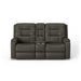 Stay comfy with everything you need for streaming, gaming or relaxing close at hand with the Arlo Power Reclining Loveseat with Console. Using the power controls in either of the arms, you and the person you’re sitting with can easily kick up your feet and recline. USB charging ports in the controls keep devices powered up and ready when you need them. A center storage console features cup holders and offers plenty of space to organize remotes, magazines and more. Comfort-enhancing design details include pull-tufted, triple-divide back cushions for a distinctive look and optimal back support. Contoured seats take pressure off your legs as you sit, while our patented DualFlex Spring System™ provides firmness and flexibility. Rounded pad-over track arms support your forearms—perfect for long hours of gaming or movie watching. Choose from over 50 leather and leather match options to create a look that’s all your own.