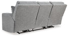 If style is the question, then this power reclining sofa is the answer. Its clean-lined profile is beautifully contemporary. High-performance fabric, machine-washable pillows and plump cushioning make it so easy to comfortably kick up your heels The adjustable Easy View™ headrest allows a primo view of the TV, and the extended ottoman provides extra room to really stretch out. Simply sit back, chill out and recline away—this sofa is designed to be your favorite seat in the house.