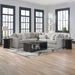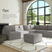 Modular seating for the evolving lifestyle Designed for a lifetime of flexibility, the Flex 5-seat sectional supports the space you have now and can easily expand when your home does. Modular components allow a multitude of configurations so you can create the perfect seating arrangement. Built with Blue Steel Spring technology and sustainable, stain-resistant performance fabric, Flex seating provides deep-seated, blissful comfort and long-lasting livability. And assembly is a breeze with a patented J-bracket “no-tool” method that takes minutes, rather than hours. Transitional style with sleek track arms in 4", 5", and 9" wide options and a deep seat for contemporary comfort Recessed plastic legs are discreet and will not scratch floors At the heart of the seat is our signature Blue Steel Spring - providing unmatched durability and support Constructed with a heavy-duty wood frame for superior durability and resistance to warping and humidity Upholstered in a gray performance fabric that is sustainably made with recycled water bottles and delivers exceptional stain- and water-resistance for easy cleanability, making it the perfect choice for active families and pets Reversible loose seat and back cushions can be flipped and rotated for even wear Enjoy all day comfort and relaxation with a back designed with the ideal ergonomic seating angle From chairs to sectionals, add or remove seats, backs and arms to change up the configuration Fully disassembles for easy moving up and down stairs, around corners and through narrow doorways Easily assembles in minutes with our patented J-bracket and C-clip pieces—no tools needed Model Number: 9022-SECT Dimensions 34.5H