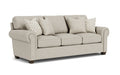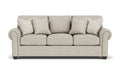 Dramatic characteristics on a bold frame A unique wrap-around padded armrest on Carson’s large-scale rolled arm is highlighted with pleats and welt cording. Optional nailhead trim tightly spaced lines the exposed arm fronts for a fun, visual effect. Relax into Carson’s overstuffed seat and back cushions after a long day and feel the stress melt away. Model Number: 7937-31 Dimensions 38H x 91W x 41L