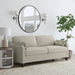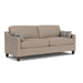 Subtle Sophistication Fine details create a simple, sophisticated aesthetic with the Drew sofa. Gently sloping arms are accentuated by a distinctive welt trim, adding a level of refinement to Drew’s transitional style. Exceptional comfort is a given with generous seating space supported by plush, boxed seat cushions and soft back cushions that are also removable and reversible for easy cleaning. Transitional style with a sloped arm Square tapered legs in a rich Florentine finish Removable and reversible seat and back cushions allow you to flip and rotate them for even wear Includes two accent pillows in your choice of fabric to match your personal style The patented Blue Steel Spring in the seat provides unmatched support and lasting comfort Sustainably sourced wood frame delivers exceptional durability Upholstered in your choice of fabric, including those with performance and sustainability characteristics Handcrafted in North America Model Number: 5725-30 Dimensions 38H x 85W x 36L