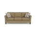 Libby is a transitional stationary style with clean lines and graceful curves. Its off-the-floor frame is complimented by square tapered legs. This sofa features an elegant roll arm with a detailed welt trim. Two square accent throw pillows are provided. The posh and plush style of Libby fits in with many home décor spaces.