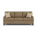 Discover the perfect blend of comfort and design sophistication with the Lloyd sofa, where mid-century modern inspiration combines with timeless touches. The refined, picture-frame back of this 3-over-3 frame lends an architectural look and optimal support, while the square tapered legs create an elevated allure. The luxurious t-shaped cushions provide ample seat space between track arms and provide lasting support with the Blue Steel Spring at the heart of each seat. Complete the look with two accent pillows that are customizable to your choice of fabric.
