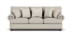 Generous proportions in an elegant design Prominently rolled arms and a padded front rail give Patterson its welcoming appearance. Overstuffed seat and back cushions on a large frame make it difficult to resist curling up on this piece. Fluted bun feet and optional nailhead trim add the finishing touches to Patterson. Also available without nailhead trim. Model Number: 7322-31 Dimensions 40H x 96W x 42L