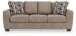 Transitional and right on trend. This sofa’s upholstery is a delightful change from the ordinary, with hints of soft brown giving the gray hue added depth. It’s punctuated with chic accent pillows in an eye-catching, stylized stripe design. Whether you're hosting friends and family or relaxing solo, this sofa invites homey, comfortable character into your space.