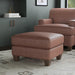 Kick up your feet on the timeless elegance of the Dempsey ottoman. The perfect companion to the Dempsey collection, this ottoman can be customized with leather upholstery and wood finish options to elevate your living space.