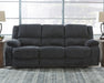 Built for luxury, this reclining sofa lets you kick back in reliable style. The thick, softly textured chenille upholstery provides a comfy surface on which to lounge. With bustle back construction and thickly cushioned armrests, this piece gives you the dependable support you need to unwind after a trying day.
