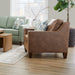 Tailored Elegance Simplicity and elegance combine in a sophisticated silhouette with the Finley chair. Featuring a distinctive profile with sloped, tapered track arms and attractive welt detailing, this stationary design is an elegant statement for any home. The semi-attached back and removable, reversible seat cushion make it easy to clean and maintain your chair. This stately frame sits on sleek, square-tapered legs and is available in hundreds of fabric options to suit your style. Sloped arms with welt trim for an elegant touch Square-tapered legs, available in three finish options Includes an accent pillow in your choice of fabric to match your personal style Built to last with Flexsteel’s Blue Steel Spring™ seat system providing unmatched support and durability Sustainably sourced, kiln-dried wood frame with mortise and tenon joinery for lasting strength High-resiliency foam core seat cushion, engineered to maintain its shape over time, complete with a layer of recovery foam for everlasting quality and luxurious comfort Semi-attached back cushion for a neat appearance Removable and reversible seat cushion you can flip and rotate for even wear Upholstered in the expertly tailored fabric of your choice, including high-performance and sustainable options Handcrafted in North America Model Number: 5010-10 Dimensions 38H x 33W x 38L