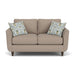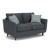 Retro Flair Add some mid-century modern chic to your living spaces with the Mia loveseat. Rounded corners, sloped flare arms and tapered legs provide a classic retro feel, while soft lines and wide, plush boxed seat cushions invite you and your guests to unwind in total comfort. Mid-century modern style with soft curves Round tapered legs in a rich Florentine finish Removable and reversible seat and back cushions allow you to flip and rotate them for even wear Includes two accent pillows in your choice of fabric to match your personal style The patented Blue Steel Spring in the seat provides unmatched support and lasting comfort Sustainably sourced wood frame delivers exceptional durability Upholstered in your choice of fabric, including those with performance and sustainability characteristics Handcrafted in North America Model Number: 5727-20 Dimensions 37H x 62W x 36L