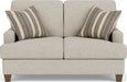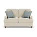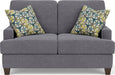 Spirit Meets Style Cozy up with a loved one or claim it all for yourself with the Moxy loveseat that lets you personalize details for the perfect look and feel. Sleek track arms provide a contemporary vibe. Square tapered leg in a choice of three distinct wood finishes—Florentine, Valencia, or Urban Renewal—to complement any décor. The removable T-shaped seat cushions offer a distinctive look and added comfort. Sink into the ideal level of support with your choice of our luxury or plush cushions. Complete the look and showcase your lifestyle with hundreds of different fabric choices, including high-performance and sustainable textiles. Superior frame construction and our patented C-Flex Blue Steel Spring™ ensures your Moxy can be enjoyed for years to come. Straight track arms provide a contemporary look Off-the-floor square tapered legs come in Valencia, Florentine, or Urban Renewal finishes Semi-attached back cushions remain fixed in place, ensuring a clean look and comfortable feel Removable seat cushions in a distinctive T-shaped style Sit comfortably with luxury cushions featuring a moderately firm polyurethane foam core wrapped with a soft fiber wrap, or select plush cushions featuring a high-resiliency polyurethane foam core wrapped with a soft fiber wrap for added support Built to last with the Flexsteel patented C-Flex Blue Steel Spring™ that provides an elevated level of support Available in hundreds of fabric choices, including those with robust performance and sustainability characteristics Comes with two accent pillows to enhance comfort and style Model Number: 5015-20 Dimensions 37H x 58W x 39L